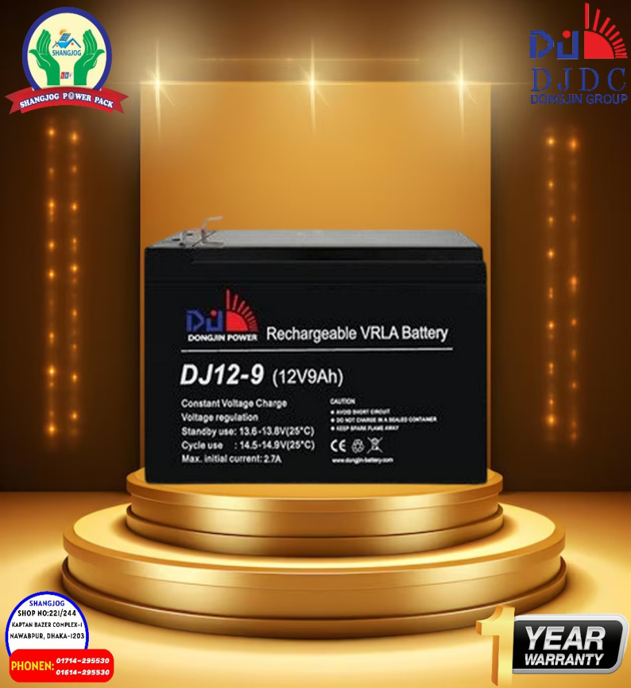 The DJ12-9 12v 9ah battery rechargeable is one of the various models of DONGJIN Battery for general usage like UPS, power backup, alarm system etc. It is an SLA / AGM spill proof battery which has a characteristic of high discharge rate, wide operating temperatures, long service life and deep discharge recover. Rechargeable battery that can be mounted in any position, resists shocks and vibration. Long lasting high performance in high and low temperatures.