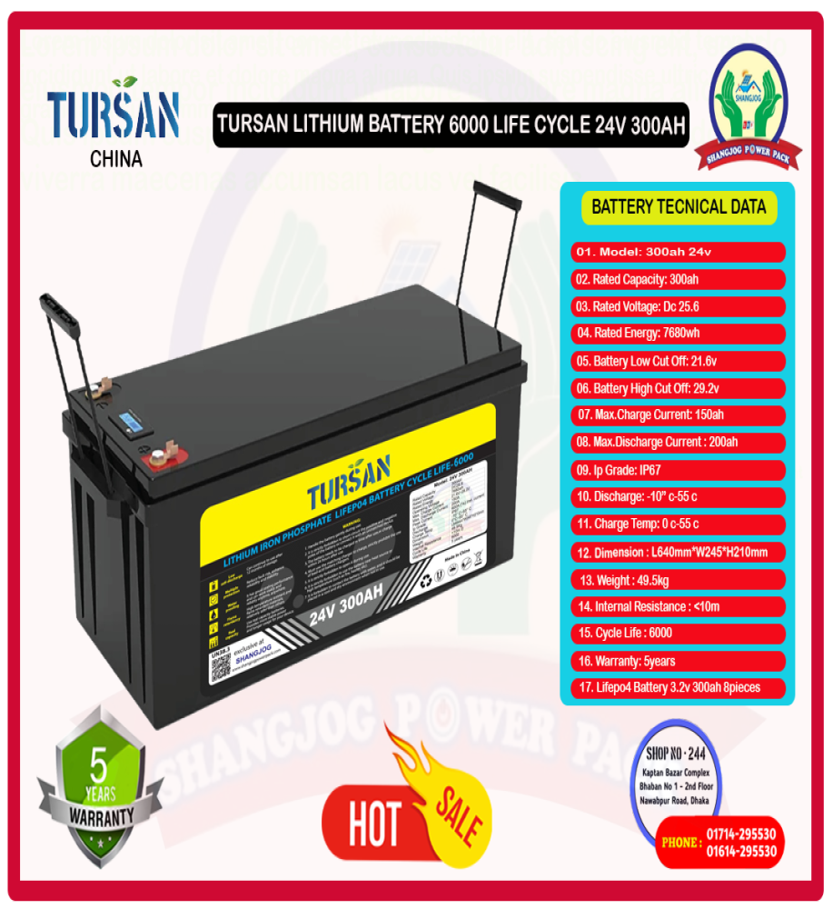 TURSAN LITHIUM LI-ION PHOSPHATE BATTERY EXCLUSIVE DISTRIBUTOR SHANGJOG POWER PACK DHAKA BANGLADESH