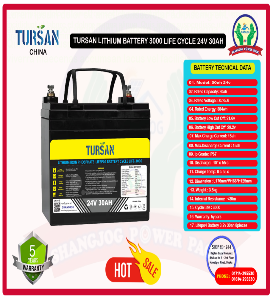 TURSAN LITHIUM LI-ION PHOSPHATE BATTERY EXCLUSIVE DISTRIBUTOR SHANGJOG POWER PACK DHAKA BANGLADESH